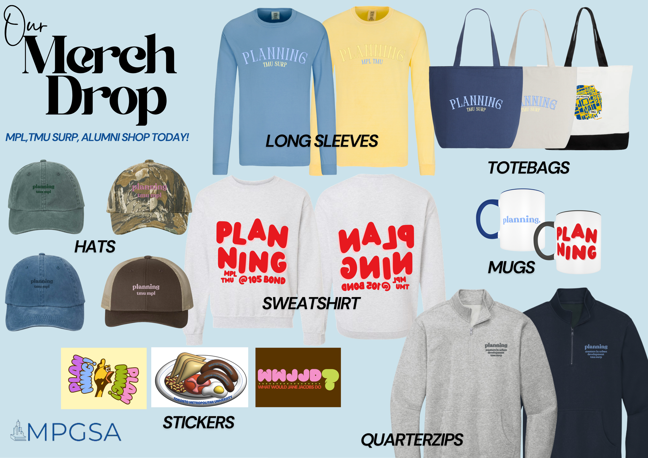 An opportunity to design merchandise for my graduate student association, Toronto Metropolitan University Masters of Urban Planning and Development Student Graduate Association.